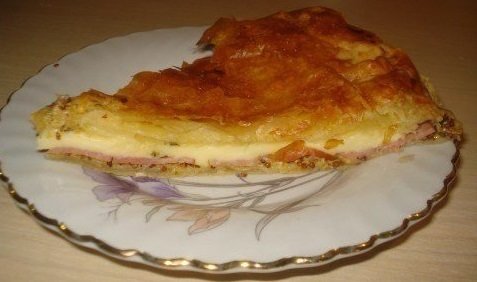Step 2 Spread the ham in mustard in one layer - for this pie it is better to take slices or ask them to cut in the store.