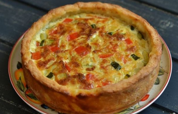 Step 2 Wash vegetables, peel and cut into cubes. Fry them in vegetable oil for 7-10 minutes. Add salt and pepper to taste. Cool and put in the form of the dough. Two eggs mixed with milk and hard cheese. Pour this mass of vegetables. Bake at t 190 ° C for about 45 minutes.