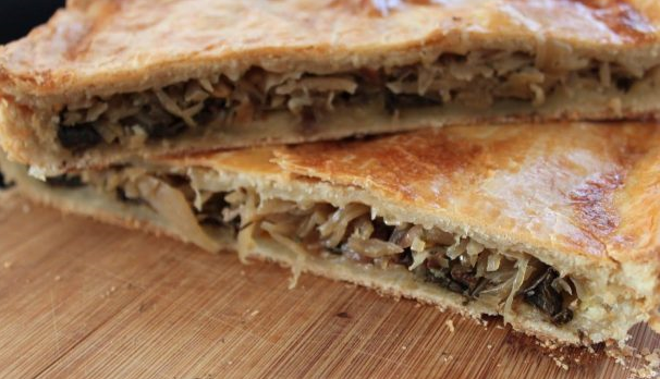 Step 1. Chop cabbage, grate with salt. Leave for 5 minutes, then fry for 10 minutes in a frying pan in vegetable oil.