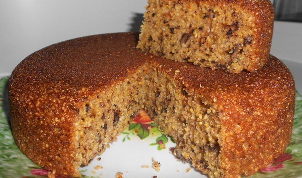Step 1. Mix eggs with sugar, add sour cream and mix well. Add soda, slaked vinegar and cornmeal. Stir and leave for 15-20 minutes, so that the cereal swells.