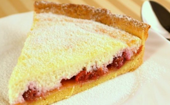Step 10 Put cottage cheese and protein cream on the cherry. Smooth the cream on the surface. Put the pie in the oven for 50 minutes. Bake at t 180 degrees.
