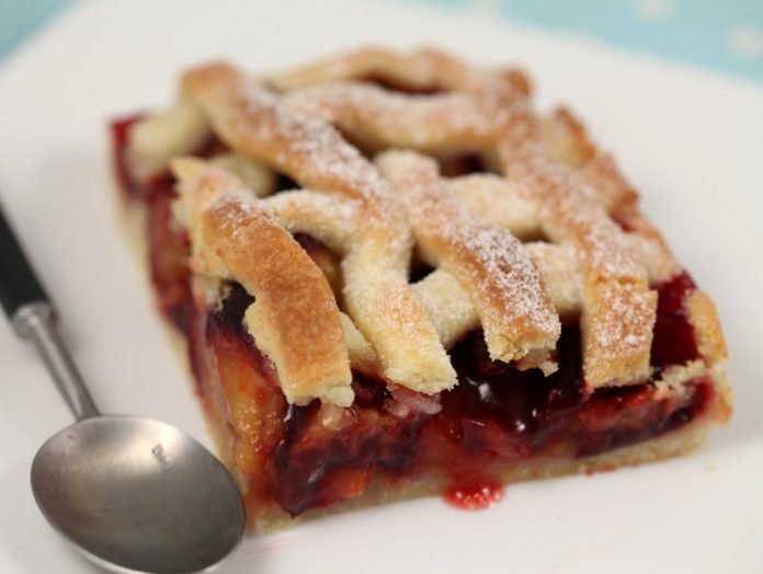 Step 8 Put strips of dough on the filling in the form of a grid.