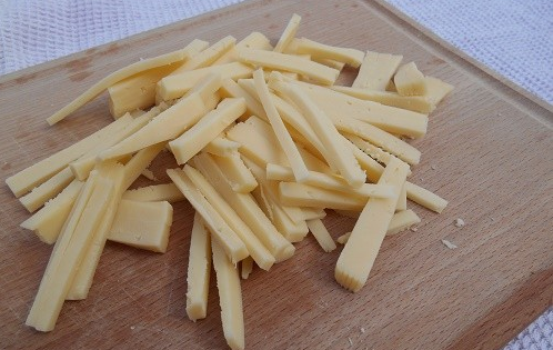 Step 2 Cheese cut into thick stripes or slices.