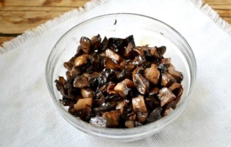 Step 1. Cut the mushrooms into small pieces and fry in vegetable oil.