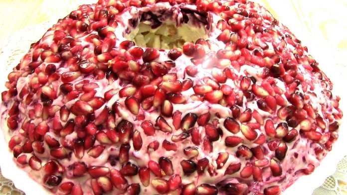Step 7 Put the cooked beets grated on a coarse grater with the last layer. Grease with mayonnaise.