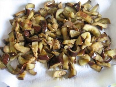 Step 6 Put the fried eggplant on a paper towel to remove excess oil.