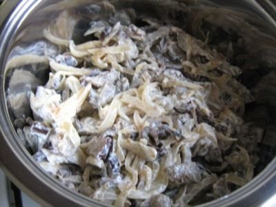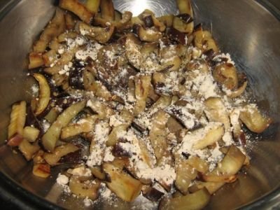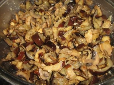 Step 10 Transfer eggplant with mushrooms into a spacious bowl. Add the fried onions.