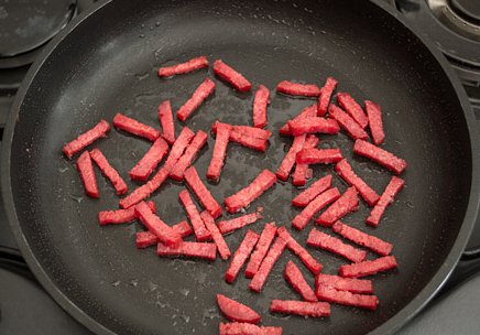 Step 6Fry the sausage in a pan for 20-40 seconds to reveal the aroma.