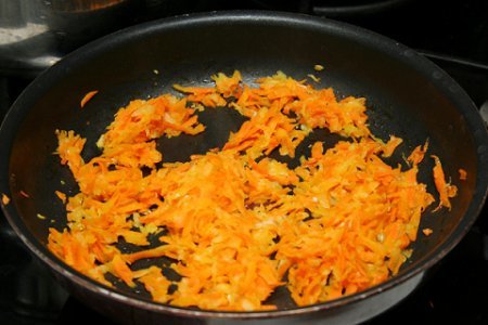 Step 5 Fry onions, carrots in a pan in vegetable oil. Cool.