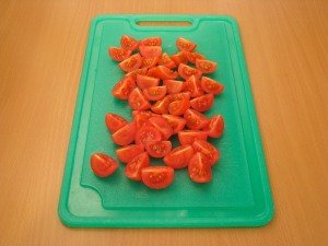 Step 3 Cherry tomatoes cut in half.