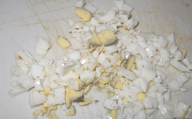 Step 2 Boil the egg in a steep, peel and finely chop.
