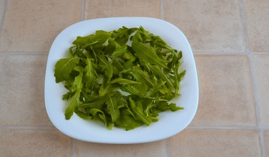 Step 5 Put the leaves of arugula on a serving plate.
