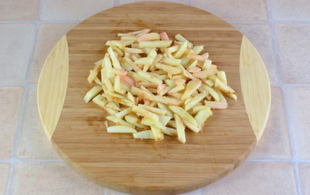 Step 4 Put celery, apples, walnuts in a salad bowl (leave 1/4 of the nuts for decoration).