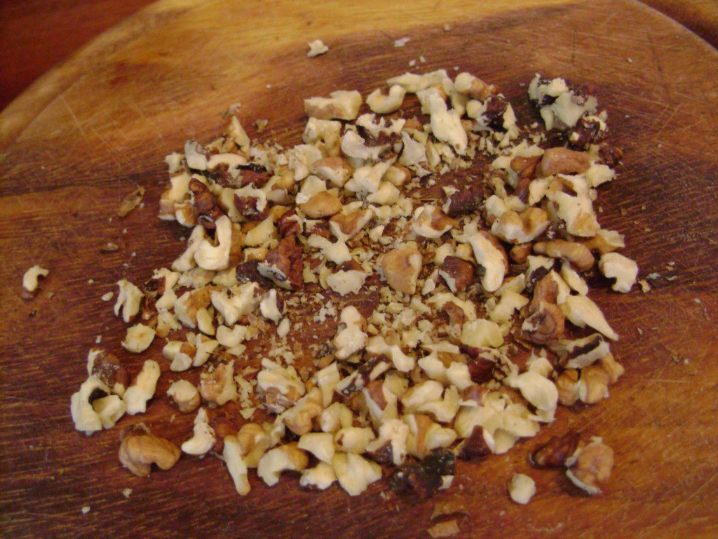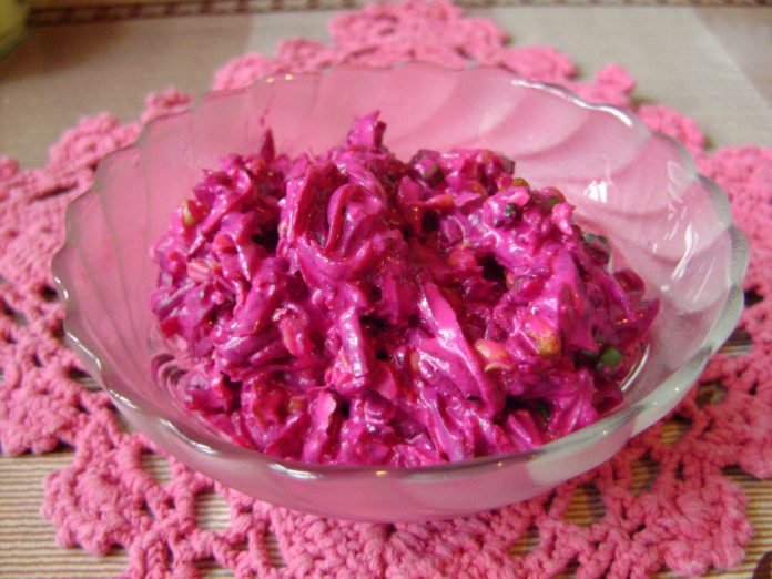 Step 3 To the beets add chopped nuts, crushed garlic, sour cream and mayonnaise, taken equally.