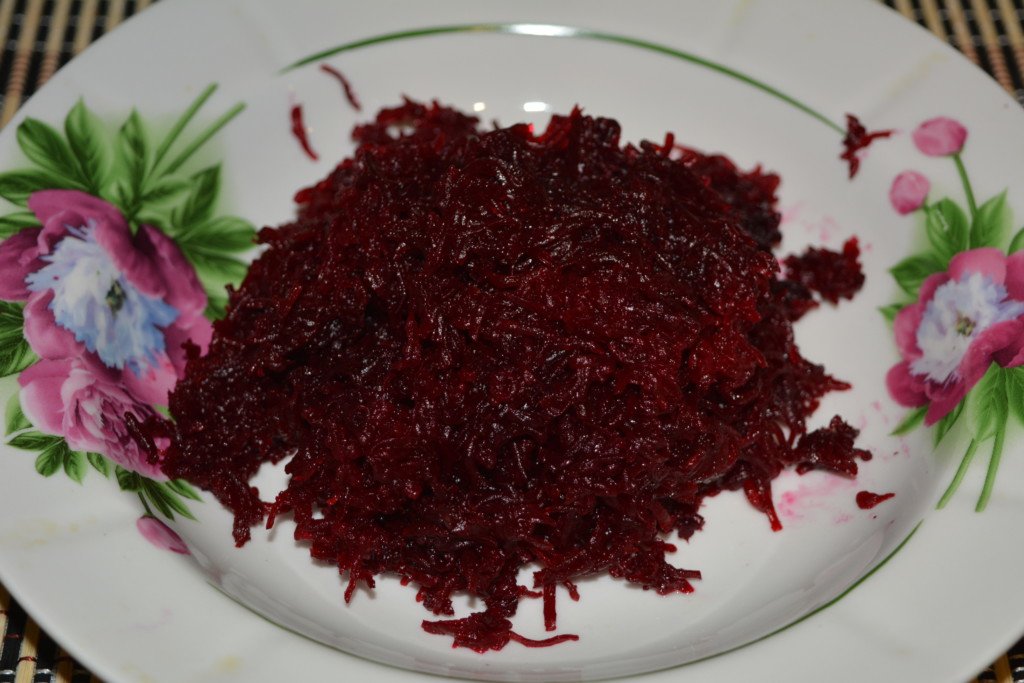 Step 1. Cook the beets, peel and grate on a medium grater.