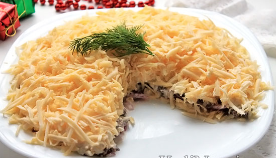 Step 8 Make a mayonnaise net on the eggs and lay the cheese on top, cover the top of the salad and sides abundantly.