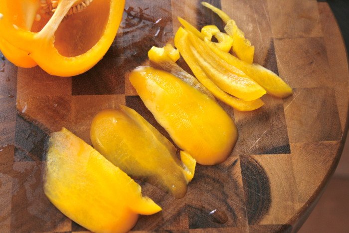 Step 5 Cut bell pepper into thin slices.
