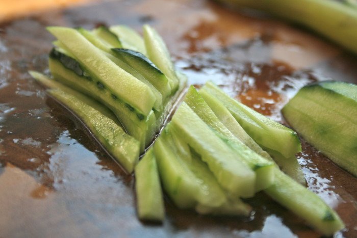 Step 6 Peel the cucumber and cut into slices.