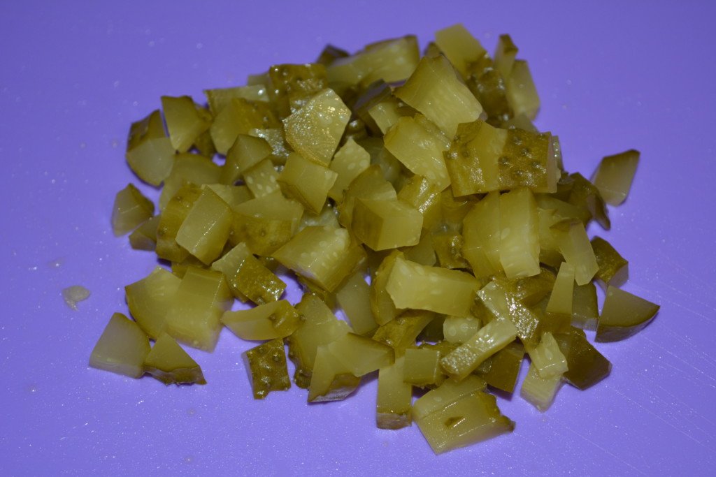 Step 4 Cut pickles into small cubes. If the peel on the cucumbers is very stiff, then they can be cleaned before slicing.