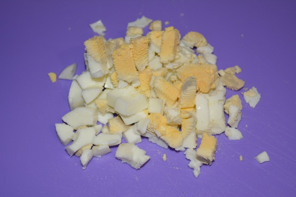 Step 2 Boil the eggs in a cool, peeled and cut into small pieces.