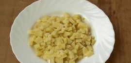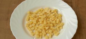Step 4 Boil eggs in a steep, peel and cut into cubes.