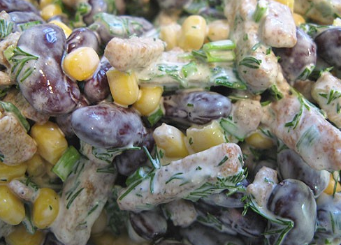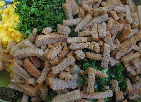 Step 4 Salt and season with mayonnaise. Bean and corn salad with crackers is best prepared immediately before serving. Add crackers at the very last moment, otherwise they will become very soft.