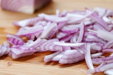 Step 4 Cut red onion into thin half rings.