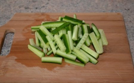 Step 6 Cucumbers cut into strips.