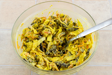 Step 11 Transfer the finished liver to all components in a salad bowl.