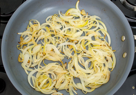 Step 2 Fry the onion until transparent and light golden, slightly salt.