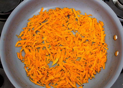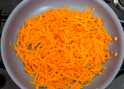 Step 3 Peel the carrots, grate, put in a pan.