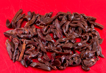 Step 9 Wash the liver and remove the film from it. Cut into thin narrow strips so that the liver is well cut, it is advisable to “freeze” it a bit beforehand (put in the freezer for half an hour or an hour).