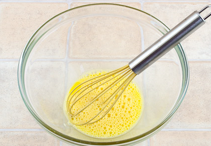 Step 5 Prepare a pancake: shake the egg and a small pinch of salt with a whisk.