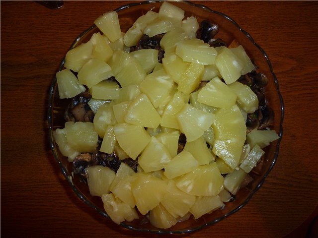 Step 4 Open a jar of pineapple, drain and add to the salad.
