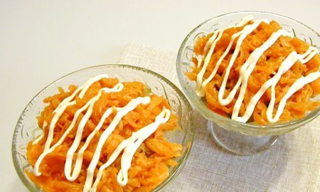 Step 5 Next - a layer of cooked carrots grated on a coarse grater. Grease with mayonnaise.