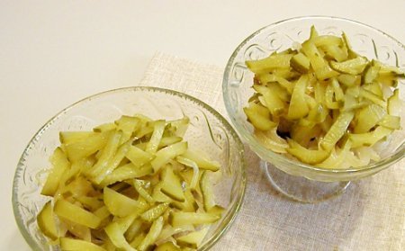Step 4 Cut pickles into thin strips, grease with mayonnaise.