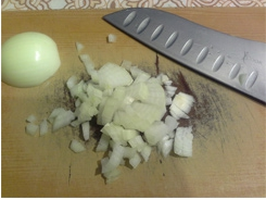 Step 5 Crumble yolks and combine in a bowl with liver, potatoes, onions and green peas.