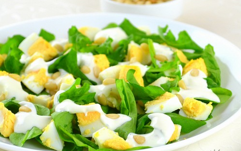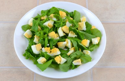 Step 3 Put the leaves of arugula on the dish, on top of the egg slices.