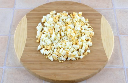 Step 3 Boil the eggs in a cool, peeled and cut into small cubes.
