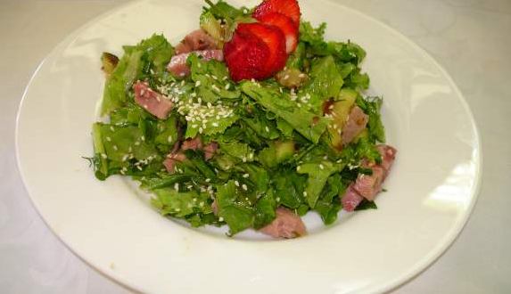 Step 7Add ham and zucchini to the seasoned salad. Stir again.
