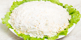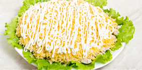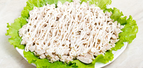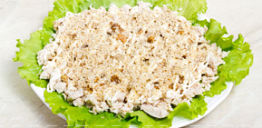 Step 7 Put chicken on the leaves, add a little salt and grease with mayonnaise.