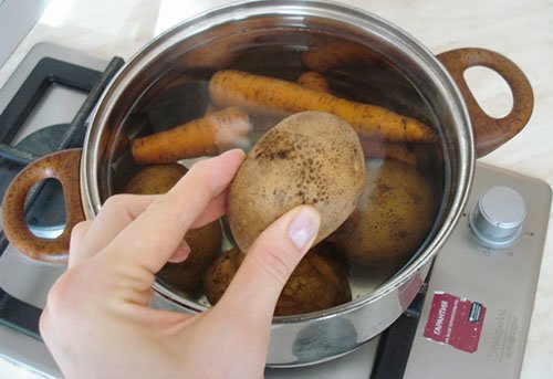 Step 2 Boil vegetables: potatoes and carrots.
