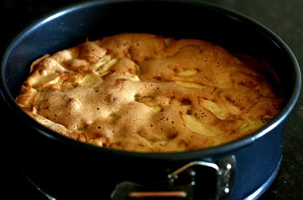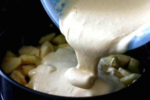 Step 3 Grease the mold with butter. Better to take a detachable form. Put the prepared apples, evenly distributed, sprinkle with cinnamon on top (optional). Pour the dough evenly on apples into the mold. Do not mix so that the dough rises during baking.