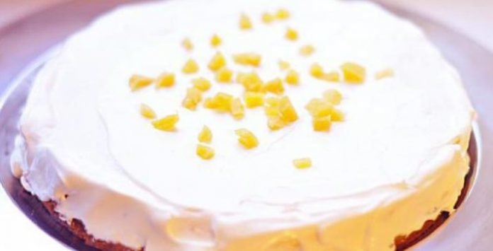 Step 7 Put the mass in a mold on a sandy base and lightly hit the table to remove excess air that got into the filling, otherwise the cheesecake will bubble when baking. Put the mold on a baking sheet, add water to make a water bath, and send it to the oven warmed up to 180 degrees for about 50-60 minutes. Then turn off the oven, but do not take out the cheesecake for another hour and a half. After that, take it out of the oven and finally cool in the refrigerator, where the cheesecake should spend at least 4 hours. After that, it can be decorated with a glass of whipped until steady peaks of cream and specially left for decoration pieces of boiled ginger and serve.