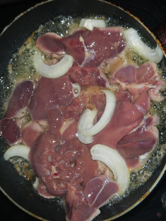 Step 2 Sauté the onion with the liver lightly salt. Fry for 10 minutes (do not overcook!).