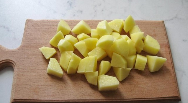 Step 1. Wash the potatoes, peel them and cut into small cubes.
