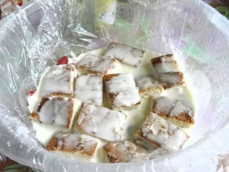 Step 8 Next, remove the cake from the container, remove the cling film. Cut a cake and serve.