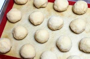Step 5 Lubricate hands with oil. And form a round ball from each part of the dough and place them at some distance from each other on a baking sheet.