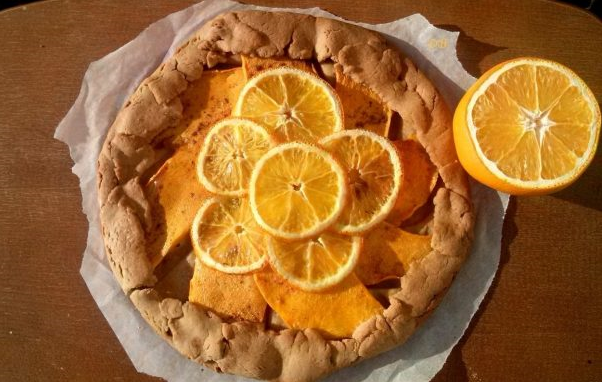 Step 6 Put the orange on top of the pumpkin. Wrap the edges of the dough. Bake in a preheated oven for 20 minutes.