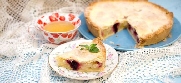 Step 6 Roll out the remaining dough along the diameter of the mold as well as the previous part, transfer it to the pie, pinch the edges. In the center, make an incision with a cross.
